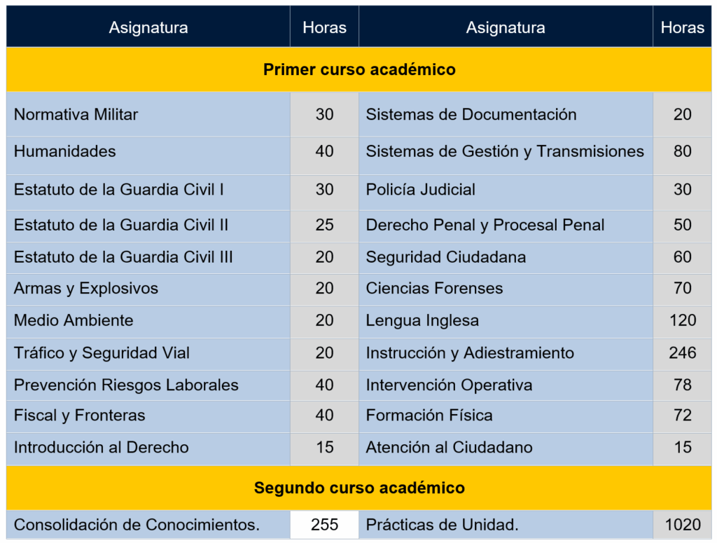 El plan de estudios en la Academia de Guardia civil de Baeza se regula, principalmente, dos normas: